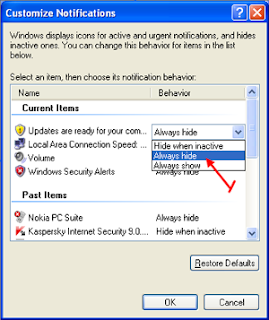 Generally Windows XP displays active icons, urgent notification icons in system tray and hides inactive icons you can change this behavior. The default setting for these icons is Hide when inactive you can change this settings to Always hide or Always show.