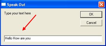 Step 5: Then type in your text into text box and press Ok button. Your computer system will speak out whatever you type there.